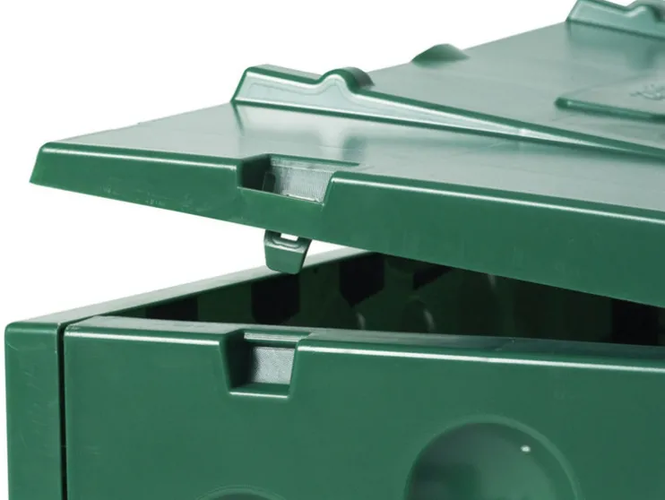 - Deksel wordt met een windvaste dekselvergrendeling op de compostbak vastgeklikt