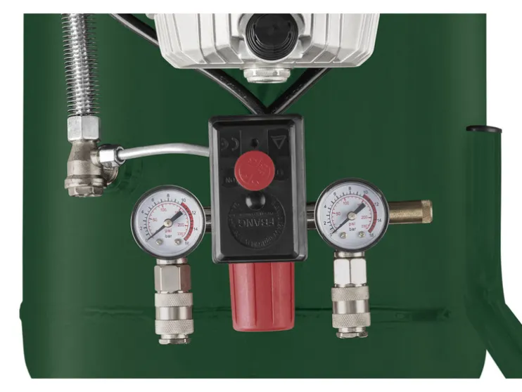 - 2 persluchtuitgangen met snelkoppeling incl. 2 aparte manometers (bar/psi)