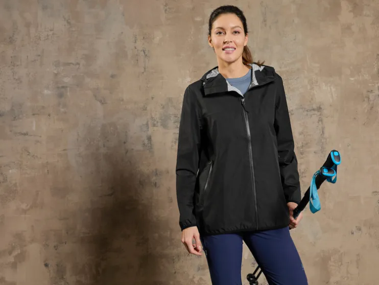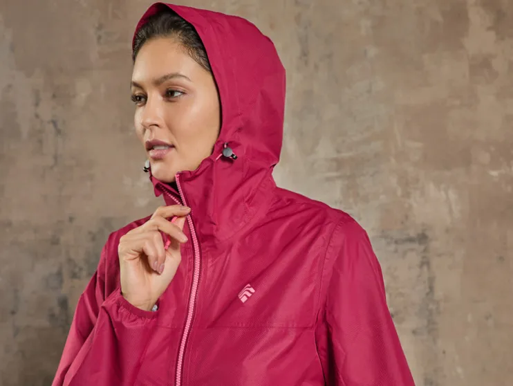 - Hoge opstaande kraag en in de wijdte verstelbare capuchon met elastiek en stopper