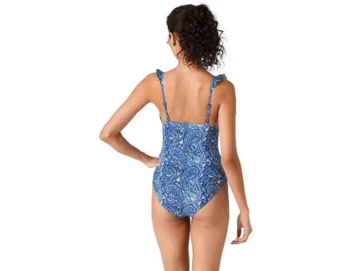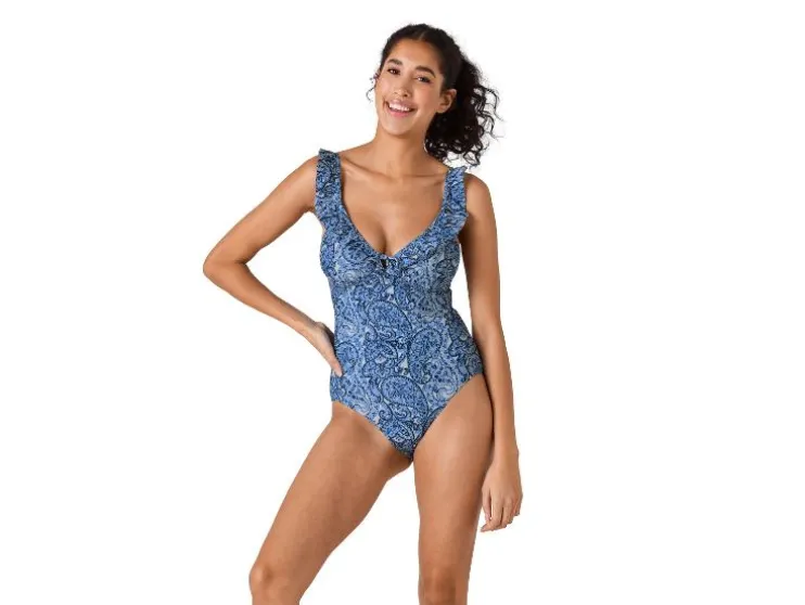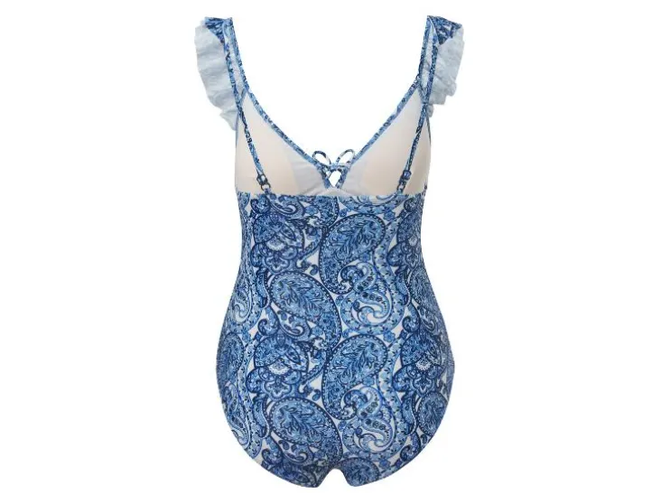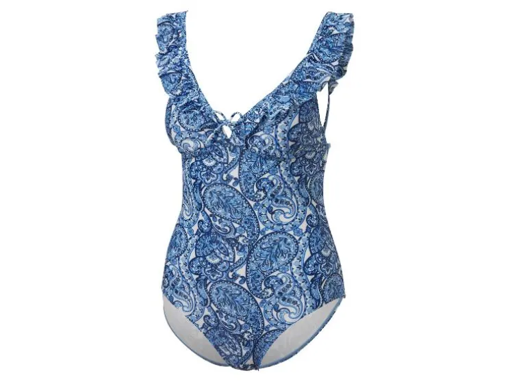 | Detail: | blauw: kleine plooitjes op borsthoogte; blauw/wit: met speelse volants en strikbandje bij de halslijn; marineblauw: in trendy piqué-look |