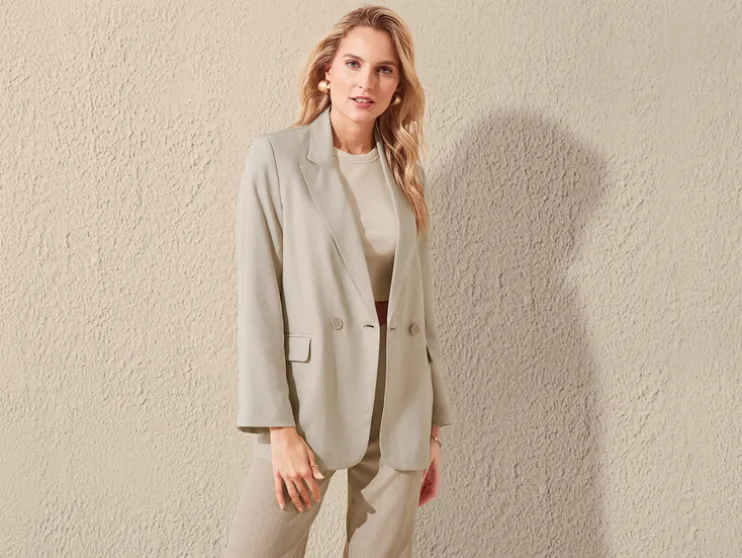 - Modieuze reverskraag en dubbele knoopsluiting