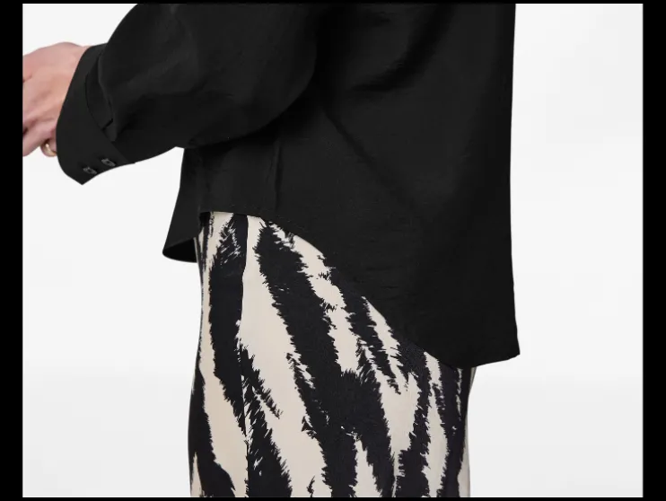 | Detail: | zacht en soepel doorlopende knoopsluiting en manchetten verlengde achterkant en afgeronde zoom |