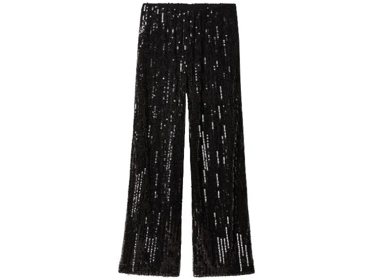 Deze damesbroek combineert comfort met een glamoureuze look. Perfect voor feestjes of een opvallende outfit.
