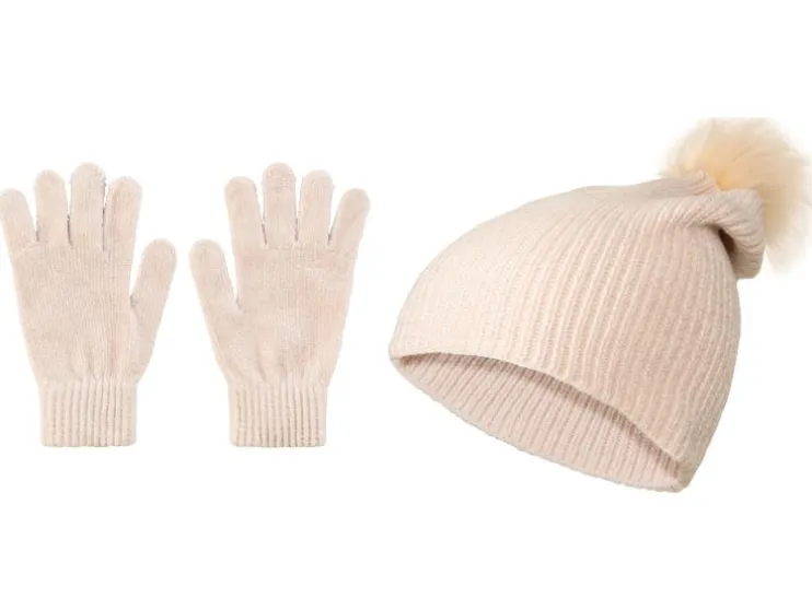 | Detail: | Muts met pompon van imitatiebont; handschoenen met gebreide boord voor optimale grip |