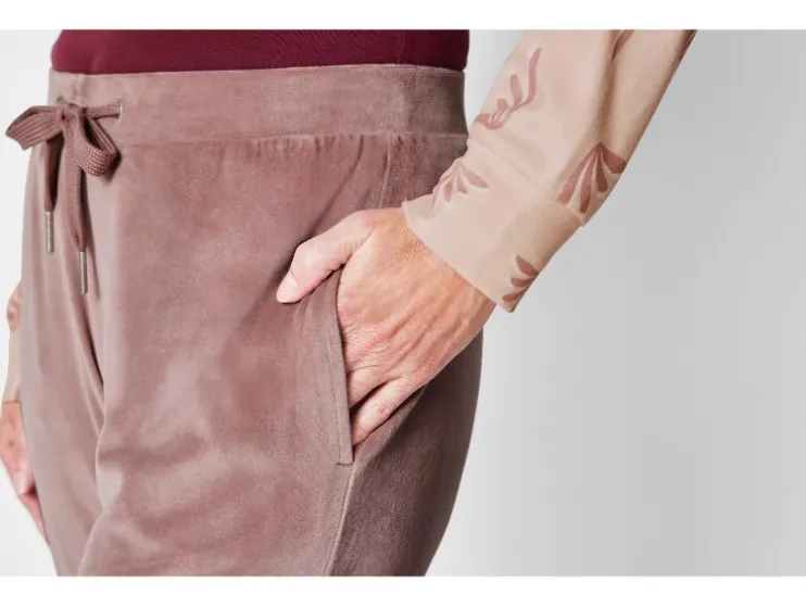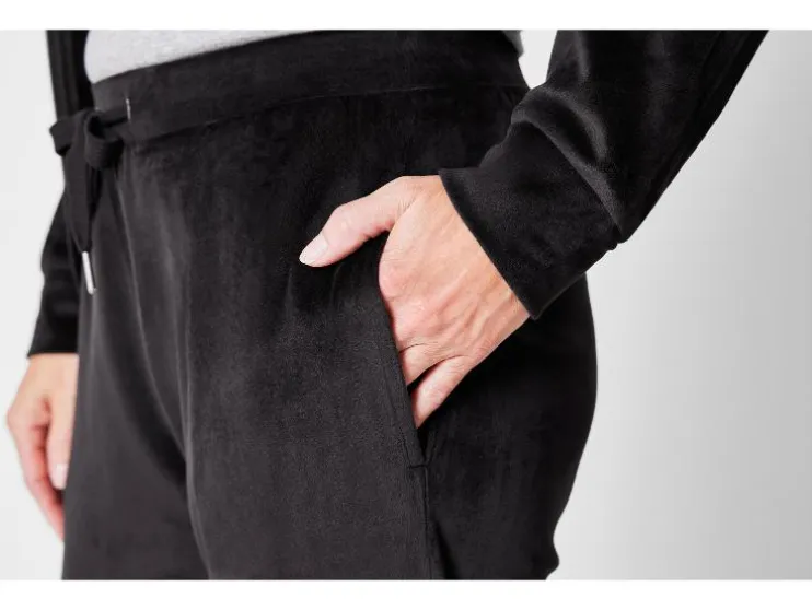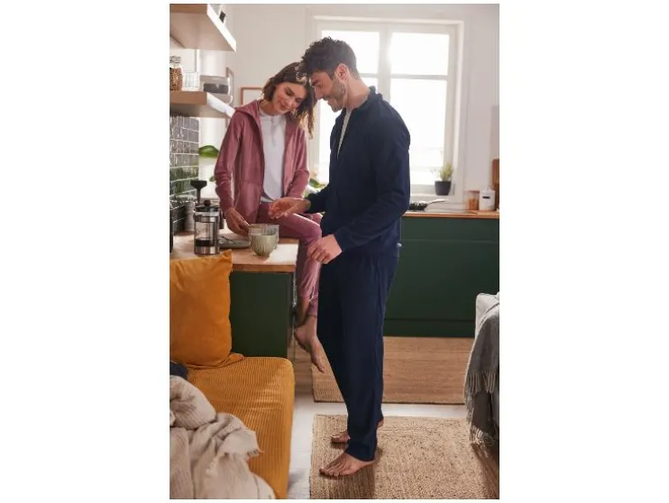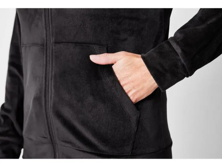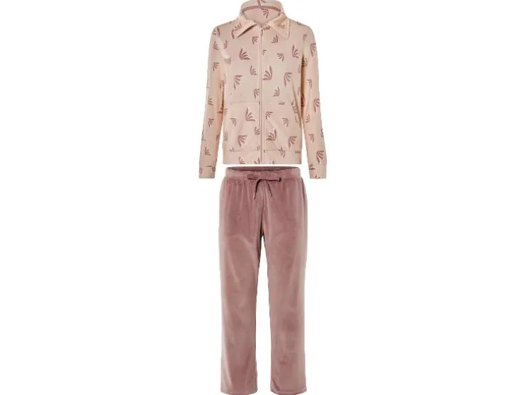 | Detail: | van knuffelig zachte nicky-kwaliteit, opgestikte kangoeroezak, broek met zijdelingse steekzakken, elastische tailleband en bindceintuur |