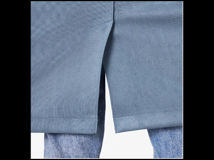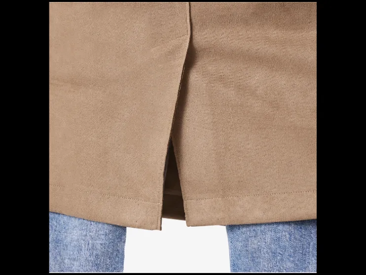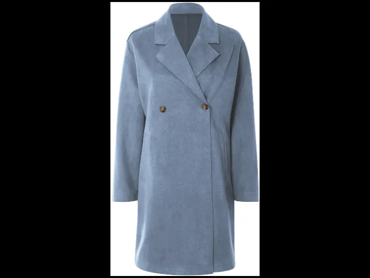 | Detail: | elegante velourslook, zakken, overgeslagen schouders, split aan de achterkant |
