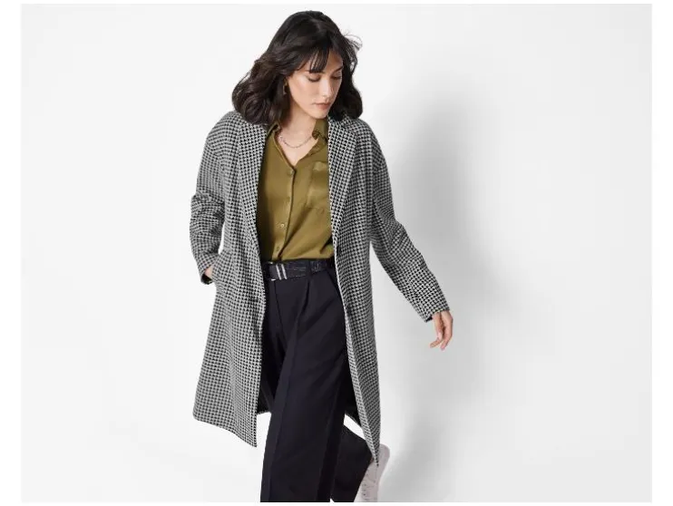| Detail: | gevoerde jas in wollen look, knoopsluiting, zakken |