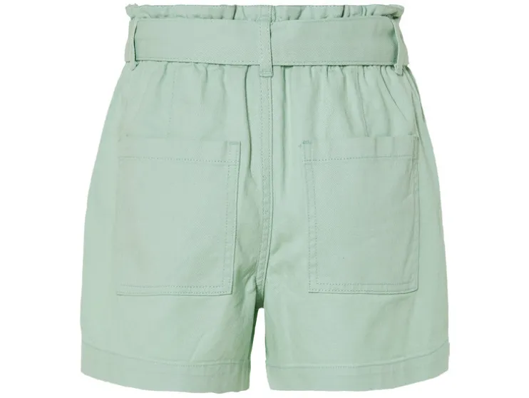 | Details: | Met decoratieve riem, hoge paperbag-tailleband, zijdelingse steekzakken |