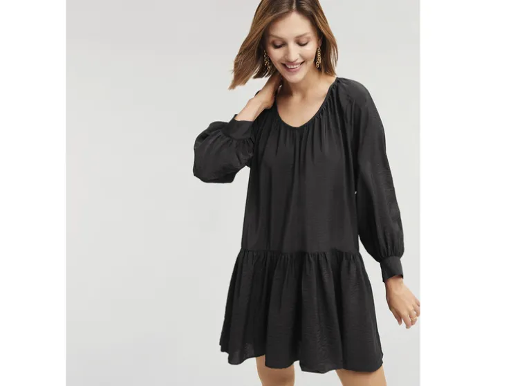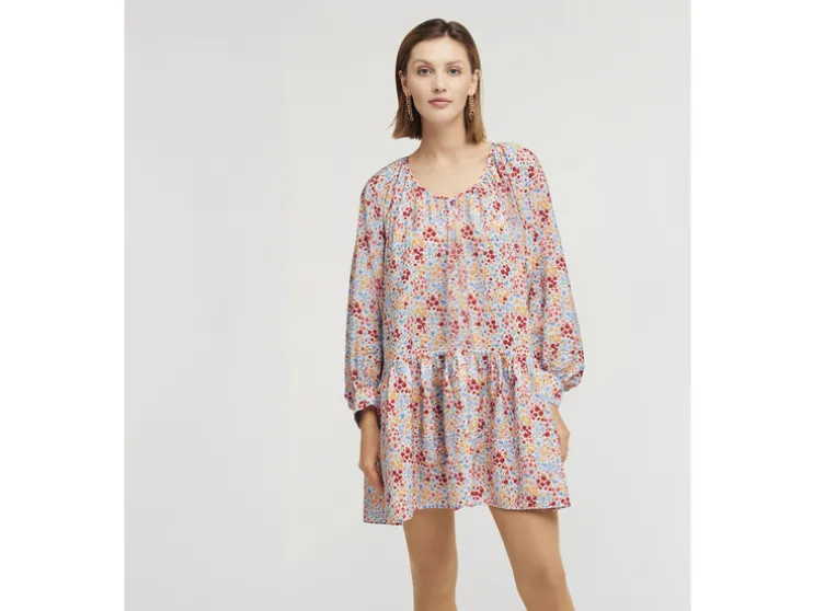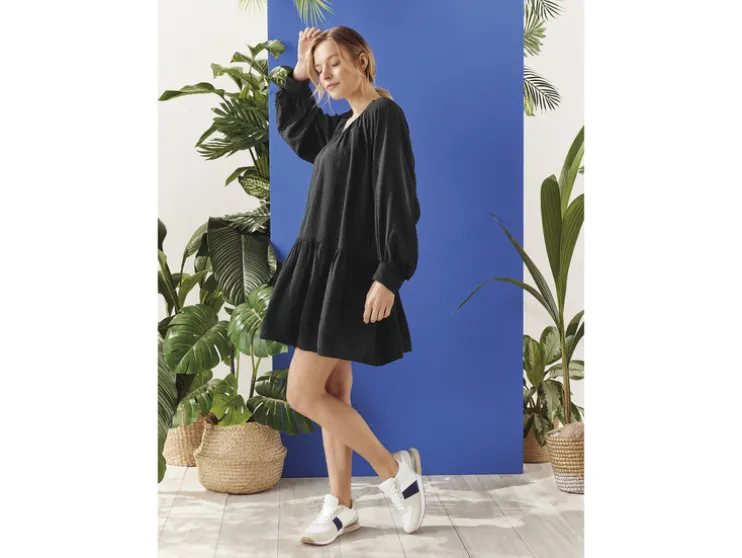 - Deze jurk is gemaakt van een aangename zachte stof en heeft een V-hals