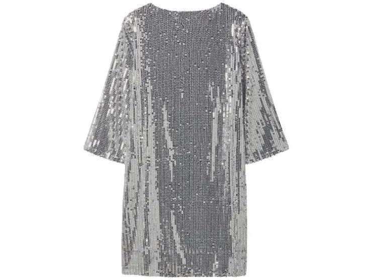 - Deze jurk is versierd met pailletten, ideaal voor een feestje of een glamoureuze look!