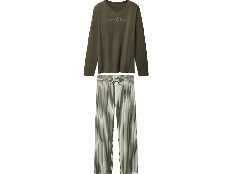 - Olijfgroen: Shirt met oversized schouders en print, broek met comfortabele elastische tailleband en trekkoord