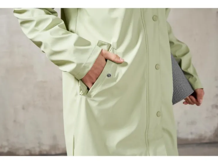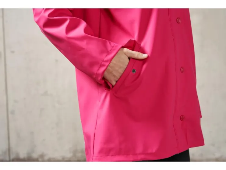 | Detail: | wind- en waterdicht door gesealde naden; capuchon met trekkoord; zijzakken met drukknoop; doorlopende ritssluiting met knoopbare stormflap |