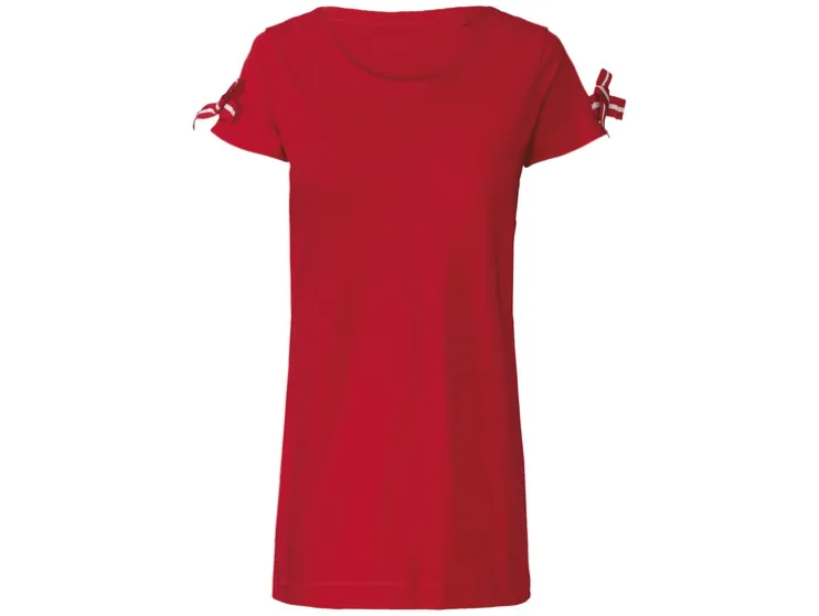 - Rood: met ronde hals en modieuze sierbandjes aan de mouwafsluiting