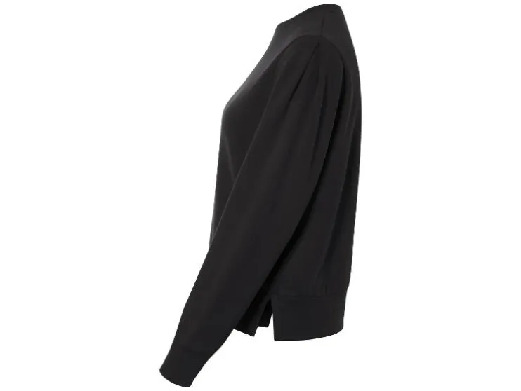 | Detail: | aangenaam zachte sweatkwaliteit met geruwde binnenkant, ingeslagen plooien bij de schouders, met zijsplitten |