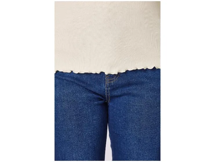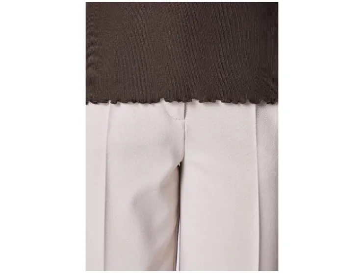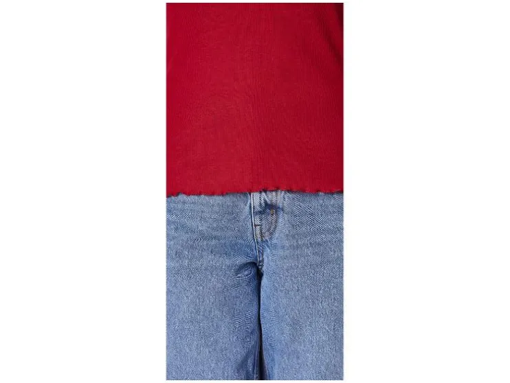 | Detail | Gekrulde rand aan kraag, mouwen en zoom |