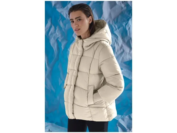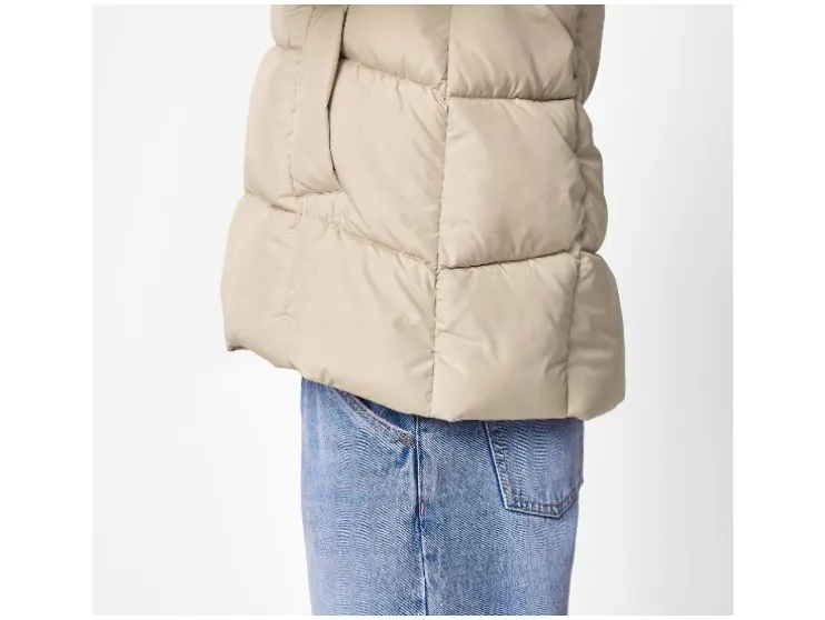 | Materiaal: | beige: bovenmateriaal/voering/vulling: 100% polyester, gebreide mouwen: 98% polyester, 2% elastaan; zwart: 100% polyester |