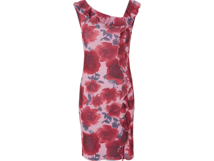 | Detail: | Van lichtgewicht mesh met gevoerde onderjurk; navy: met plooien bij de schoudernaad; patroon pink/rood met transparante ruches |