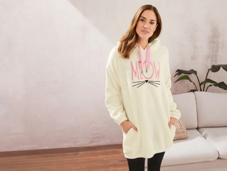 esmara dames pluche jurk met capuchon en teddypluche