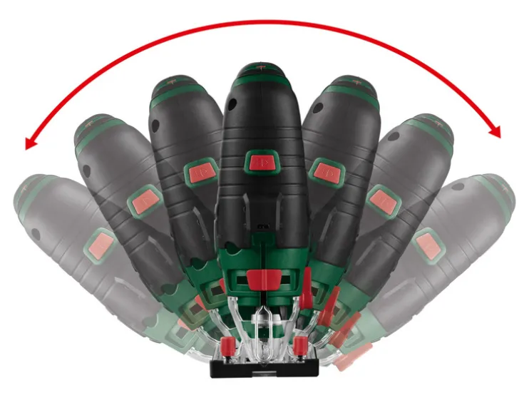 - Snellere zaagvoortgang door 3-traps inschakelbare pendelslag