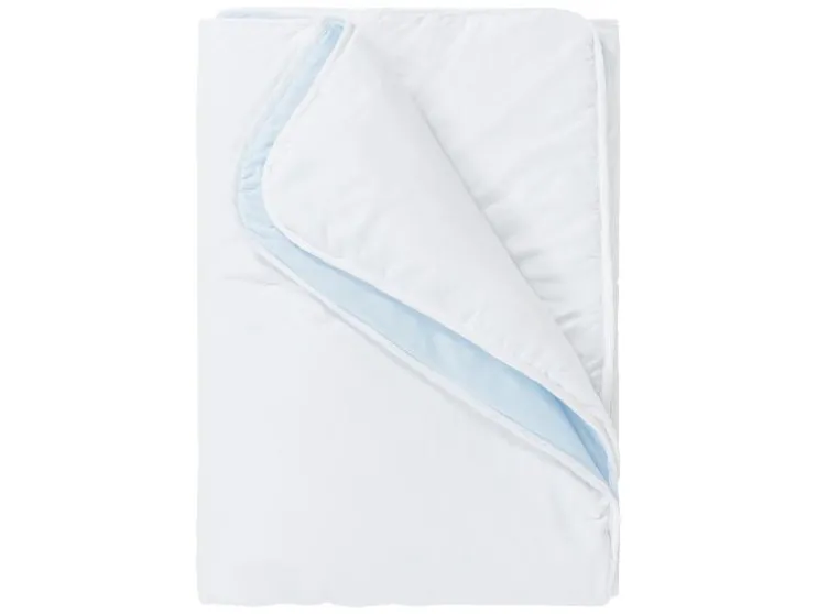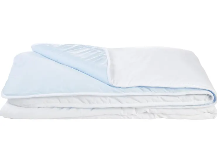 - Lichtblauwe zijde met een verfrissend koel effect – temperatuurregulerend op warme zomernachten. Gestepte hoes van lichte, zachte microvezelkwaliteit