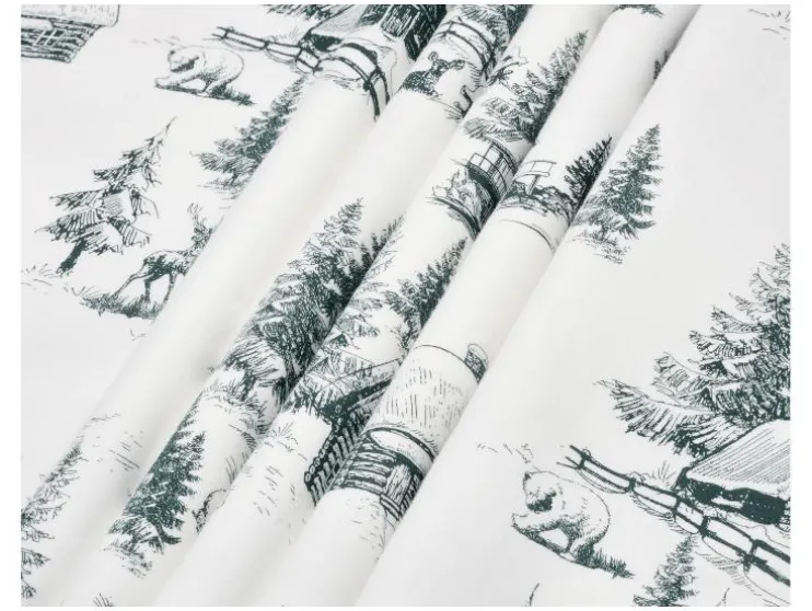 | Kleur / patroon: | Bladeren/wit; Ruit/beige; Mensen; Huizen; Dennenboom/wit/groen |