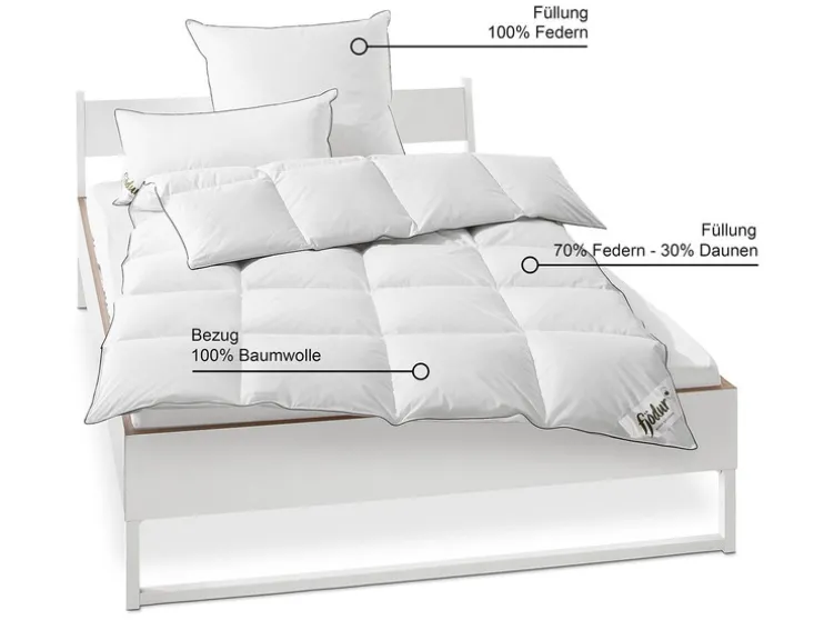 - Het Downpass-zegel garandeert de uitstekende kwaliteit van het ganzendons en de veren van de hoogste kwaliteitsklasse (volgens DIN EN 12934) door middel van controles en audits