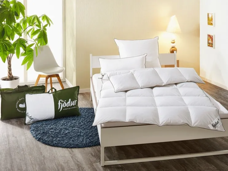 - Het fjödur cassettedekbed met 70% veren en 30% dons wordt gekenmerkt door luchtige klimaateigenschappen en een uitstekend ademend vermogen