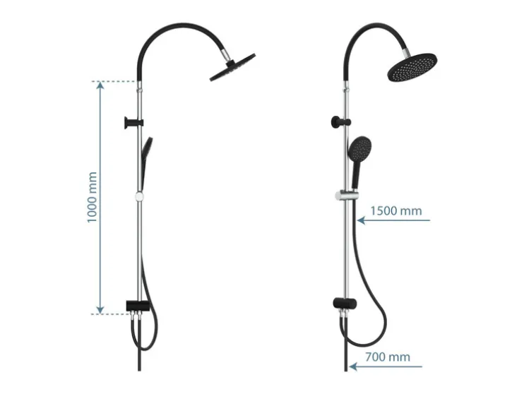 - Mogelijk om de hoogte van de douchekop aan te passen dankzij flex-systeem