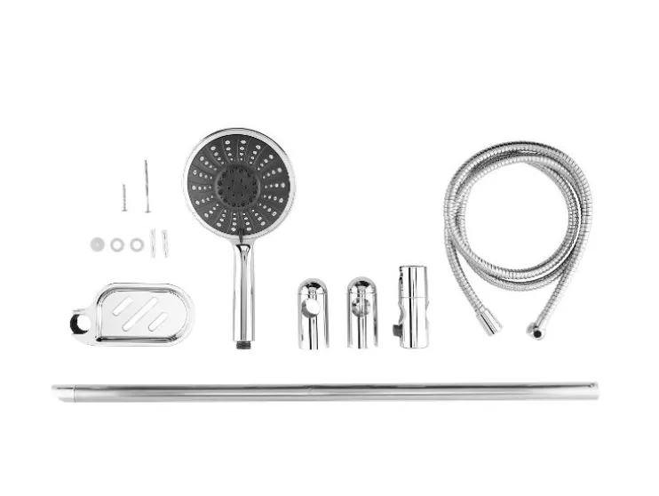 - RVS-douchestraal met zeephouder, douchekop en doucheslang