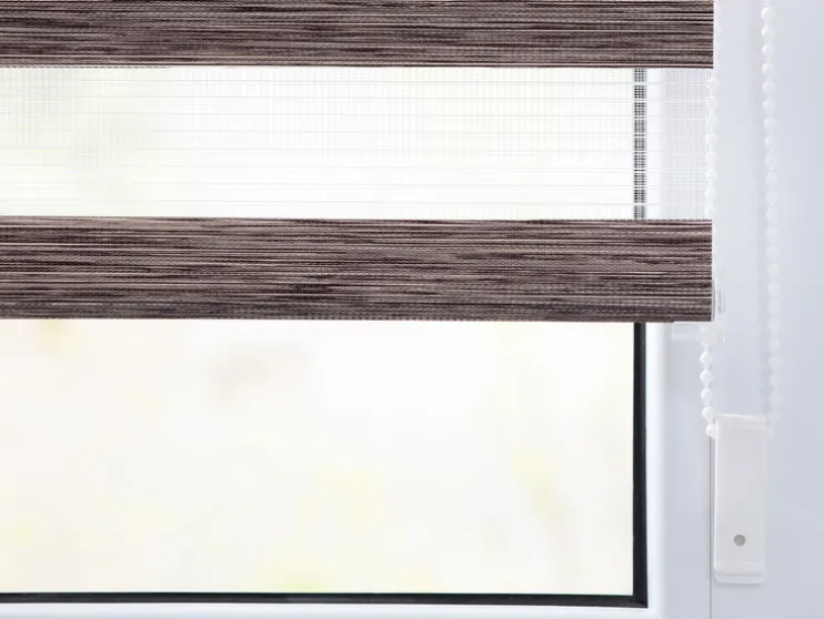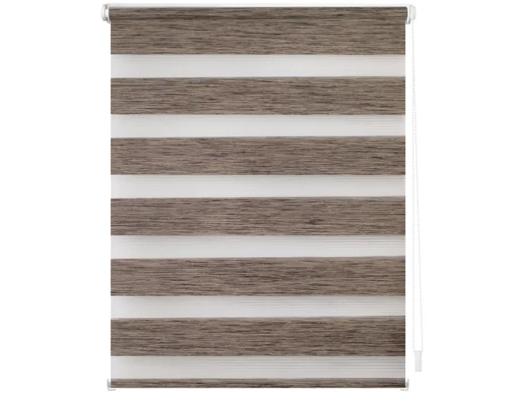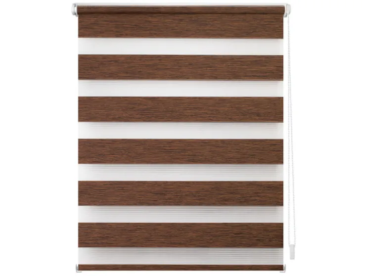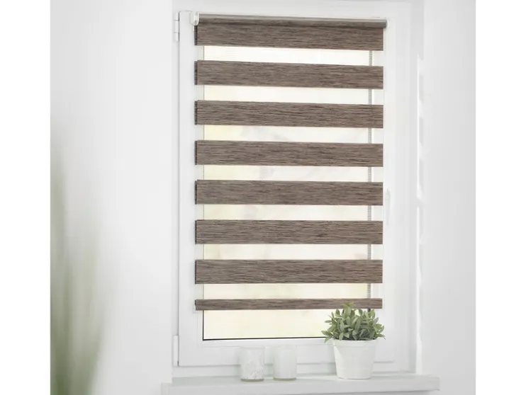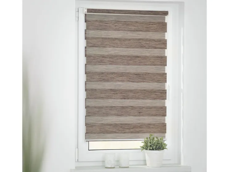 Een revolutionair zonweringssysteem voor licht- en privacybescherming,, maar ook moderne raamdecoratie biedt je dit hoogwaardig verwerkt duo rolgordijn. Met de twee parallelle stoffen panelen met afwisselend transparante en ondoorzichtige strepen kun je het invallende licht geheel individueel regelen. Hierdoor ontstaan prachtige lichtspelingen. Met behulp van de trekketting aan de zijkant kan de positie van de stoffen panelen uiterst nauwkeurig worden aangepast, zodat ofwel meer daglicht door de transparante stroken dringt, ofwel de ondoorzichtige stroken op betrouwbare wijze bescherming bieden tegen nieuwsgierige blikken. Deze functie kan op elke hoogte worden gebruikt, omdat de stof net als bij een conventioneel zijdelings trekkend rolgordijn volledig op en neer kan worden gerold. De Duo Rollo verfraait met zijn aangename houtlook & de natuurlijke kleurstelling in de „Natural Living“ look de meest uiteenlopende ruimtes.