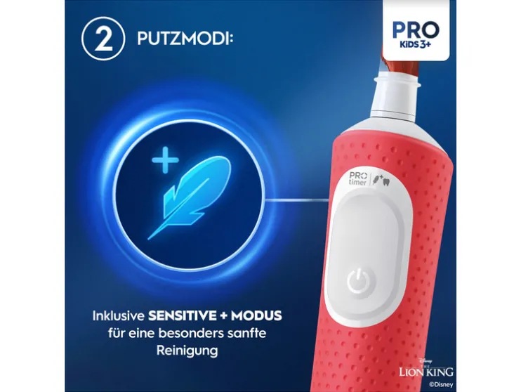 De Oral-B Pro Kids elektrische kindertandenborstel voor kinderen vanaf 3 jaar zorgt voor meer plezier bij het tandenpoetsen met individuele favoriete helden en zorgt tegelijkertijd voor een zachte, effectieve reiniging van de tanden en tandverzorging. Met de extra zachte borstelharen en de unieke, kindvriendelijke Sensitive+ modus wordt het gevoelige tandvlees beschermd en de tanden voorzichtig gereinigd. De elektronische tandenborstel verwijdert meer plak dan een gewone handtandenborstel. In de leveringsomvang zijn 4 verschillende stickers inbegrepen, die jouw kind op het handstuk kan plakken.