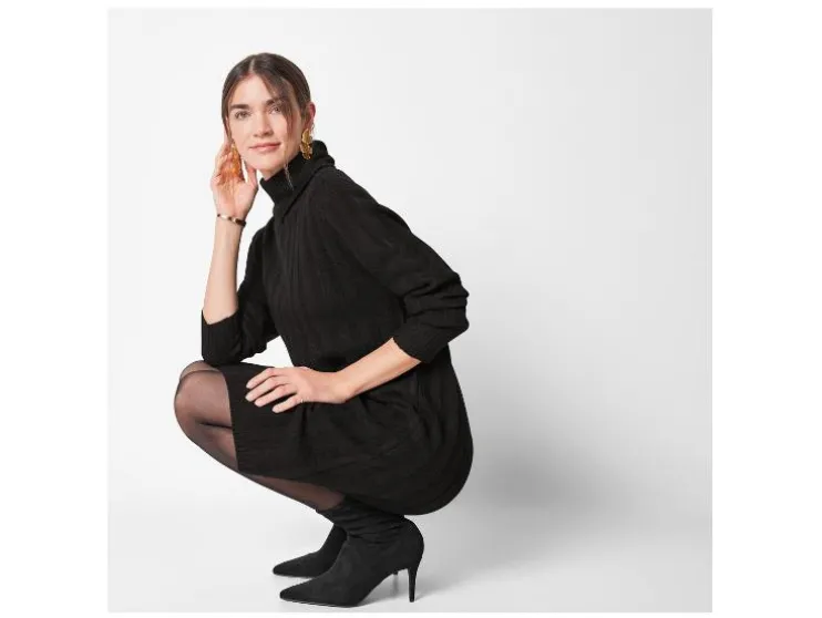 - Zwart, wit: in modieus gebreide structuur met rolkraag
