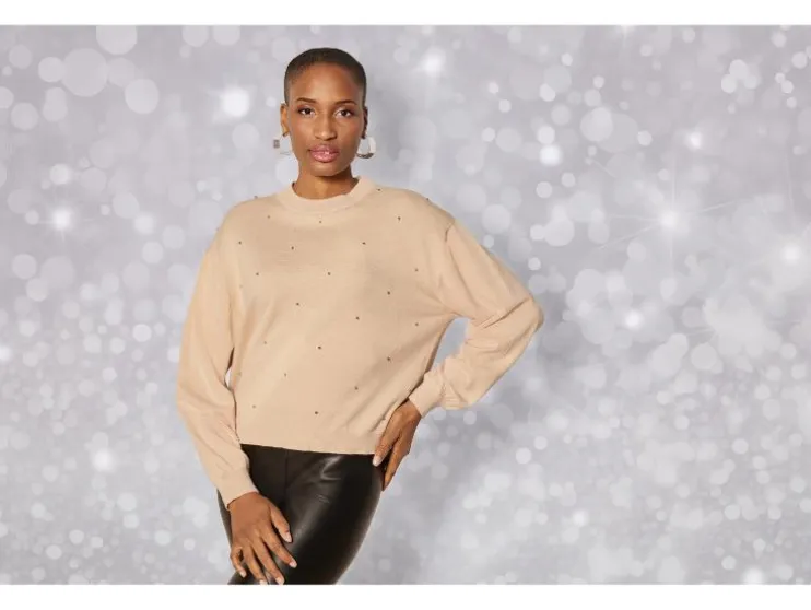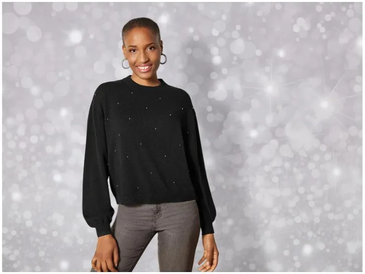 esmara® Dames gebreide trui, met opgezette zilverkleurige parels