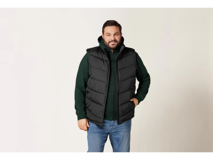 | Detail: | Opstaande kraag, doorlopende ritssluiting met kinbescherming, YKK-merkrits, bodywarmer groen: zijdelingse steekzakken; bodywarmer zwart: ritszakken aan de zijkanten |