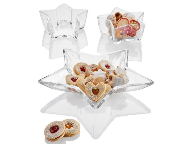 | Leveringsomvang: | Rond, 5-delig: 1x grote schaal, 4x kleine schaal; Ster, 3-delig: 1 grote schaal, 2x kleine schaal; Serveerbord, 5-delig: 1x grote serveerschaal, 4x kleine serveerschaal |