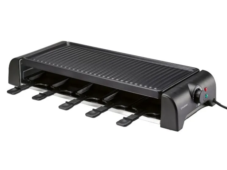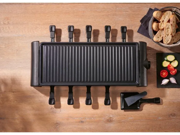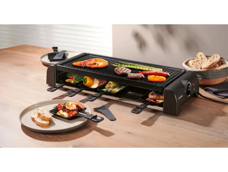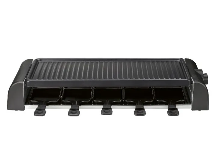 - Inclusief 10 raclettepannetjes met ILAG® SP-300 coating en afgeschuinde rand voor makkelijk uitschuivenI