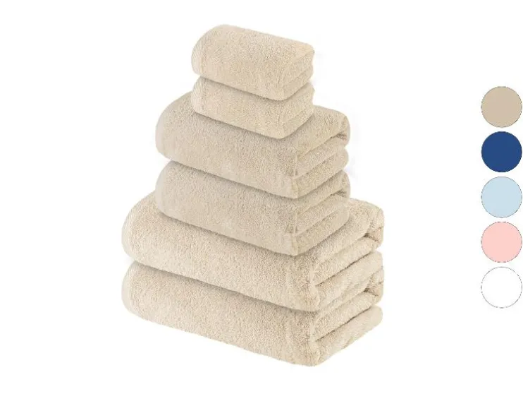 | Afmeting: | Douchehanddoeken: ca. 65 x 120 cm Handdoeken: ca. 50 x 90 cm Gastendoekjes: ca. 30 x 40 cm |
