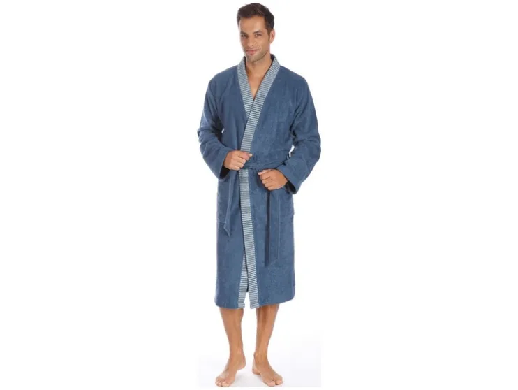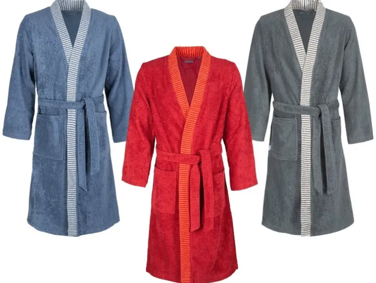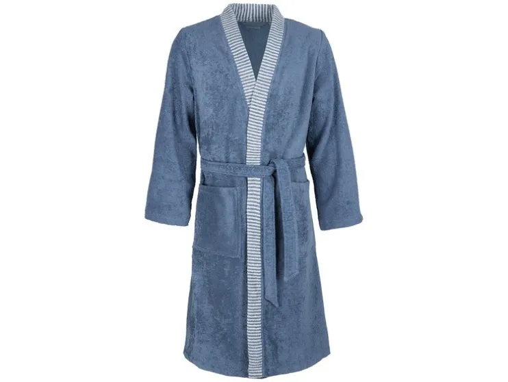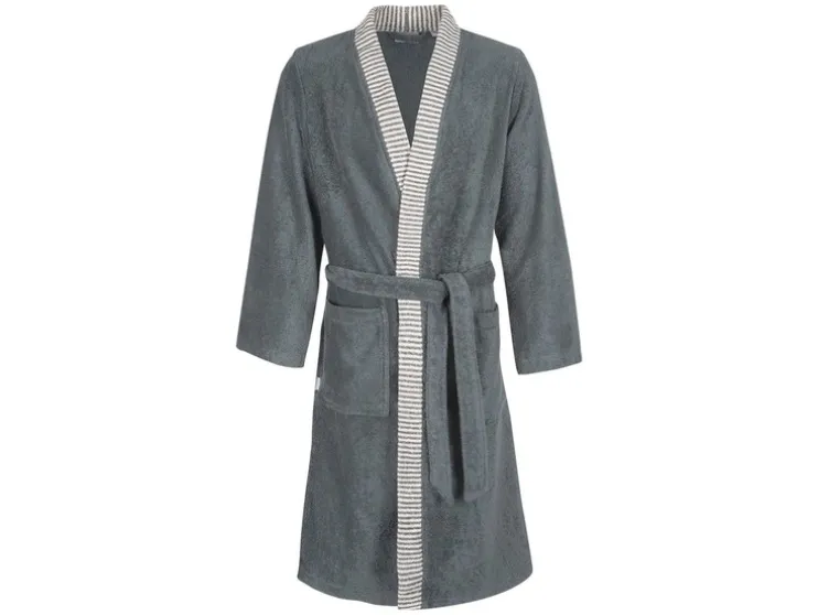 Een klassieke kimono voor elke gelegenheid – de contrasterende gestreepte bies en ton-sur-ton riem maken van deze harmonieus ingetogen mantel een visueel hoogtepunt. Het hoge draagcomfort en de goede vochtabsorptie en twee opgestikte zakken ronden het totaalplaatje perfect af. Je kun je geschikte maat vinden in de maattabel.