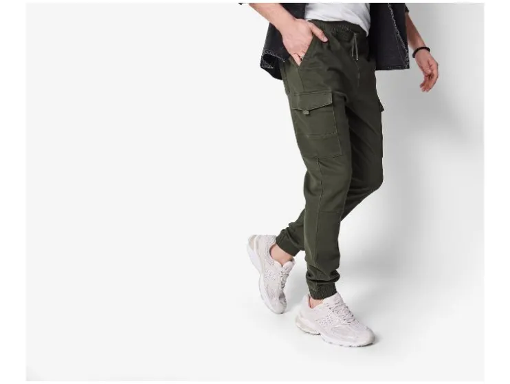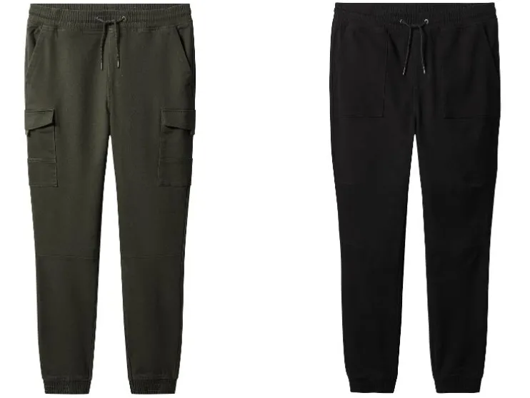 | Detail: | Elastische tailleband, trekkoord, boorden, zakken, achterzak, Olijfgroen: opgestikte cargozakken |