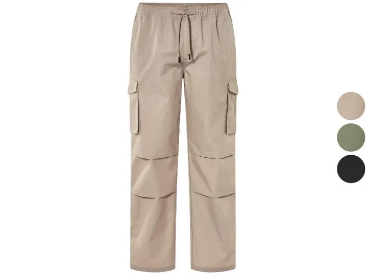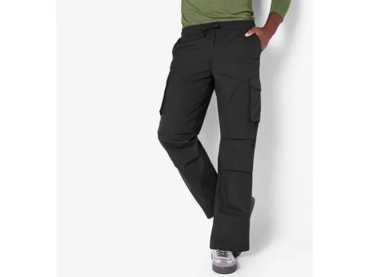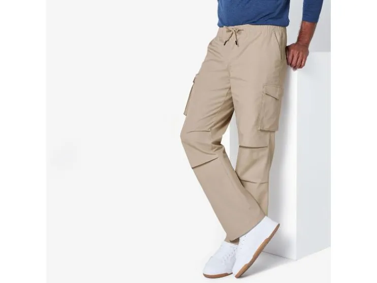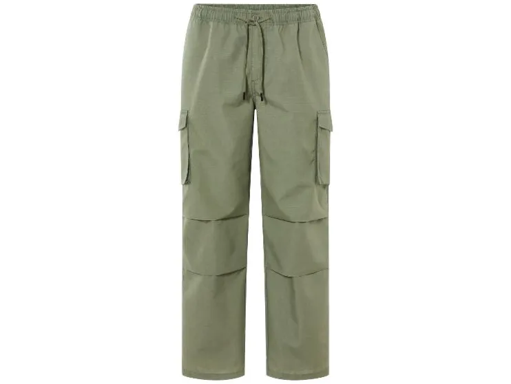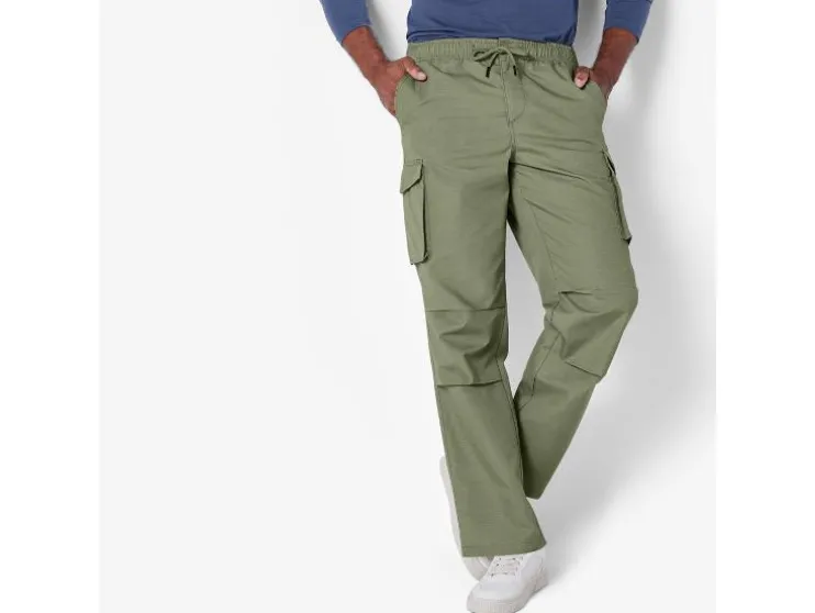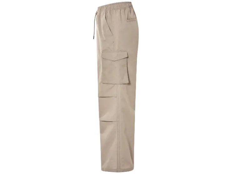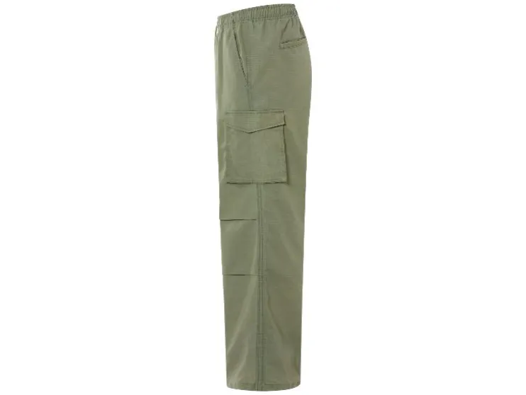| Detail: | Ripstop-patroon; elastische tailleband, ritssluiting, trekkoord, steekzakken en achterzakken; Cargos met drukknoop en klep; |