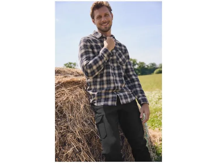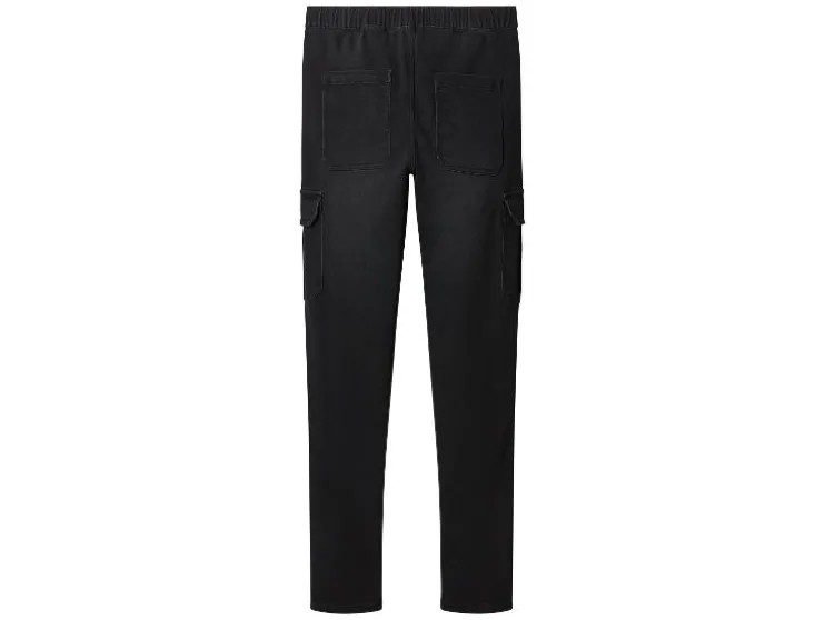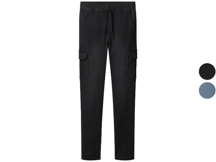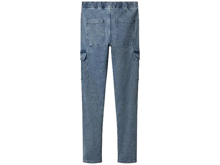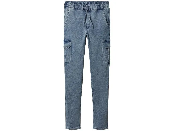 | Detail: | Uitstraling van een jeans, elastische tailleband met trekkoord, steekzakken, cargotaschen en achterzakken |
