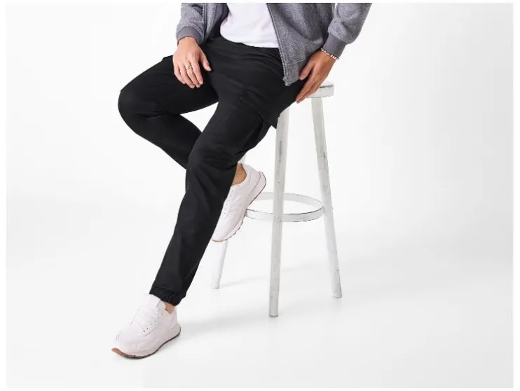 | Detail: | elastische tailleband, trekkoord, zakken, achterzakken, cargozakken, boorden |