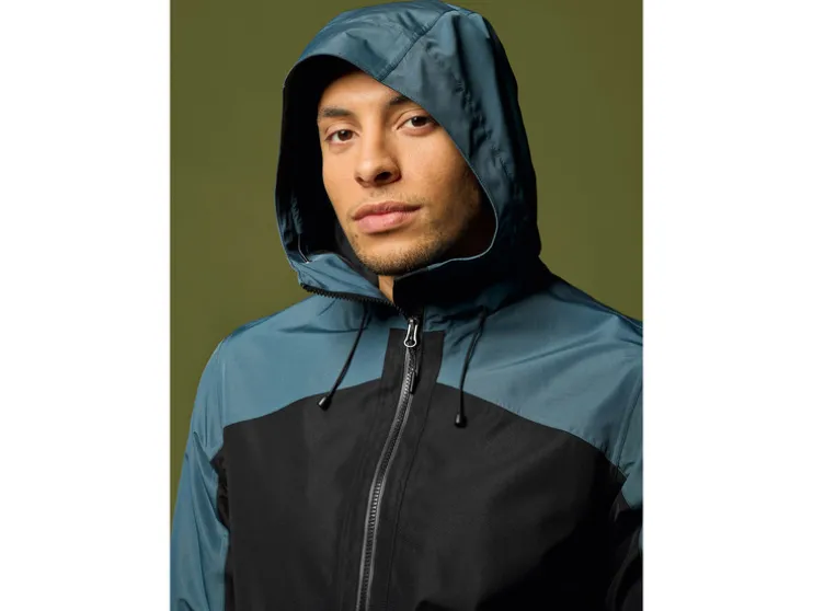 - Hoge opstaande kraag en in de wijdte verstelbare capuchon met koord en stopper