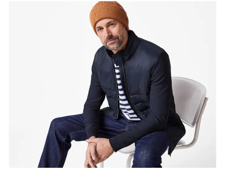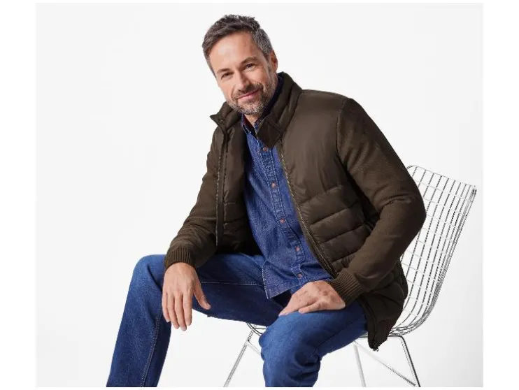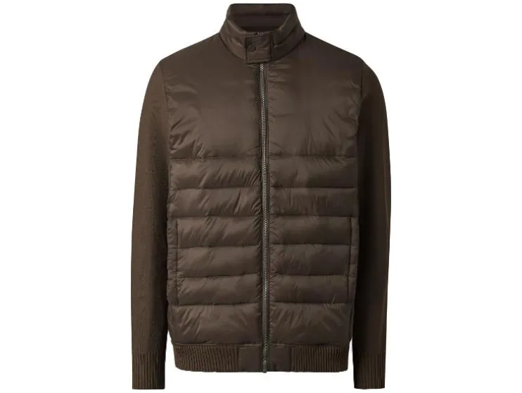 - Deze jas is deels gevoerd en heeft gebreide mouwen
