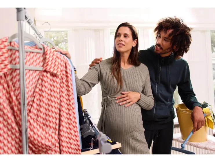 - Met steekzakken, achterzak, elastische tailleband en koord