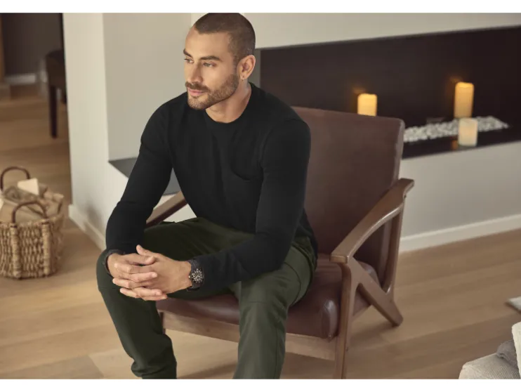 - Met ronde hals en borstzak