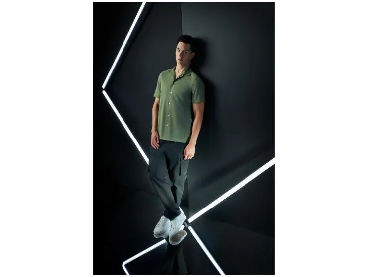 - Met resortkraag en doorlopende knoopsluiting