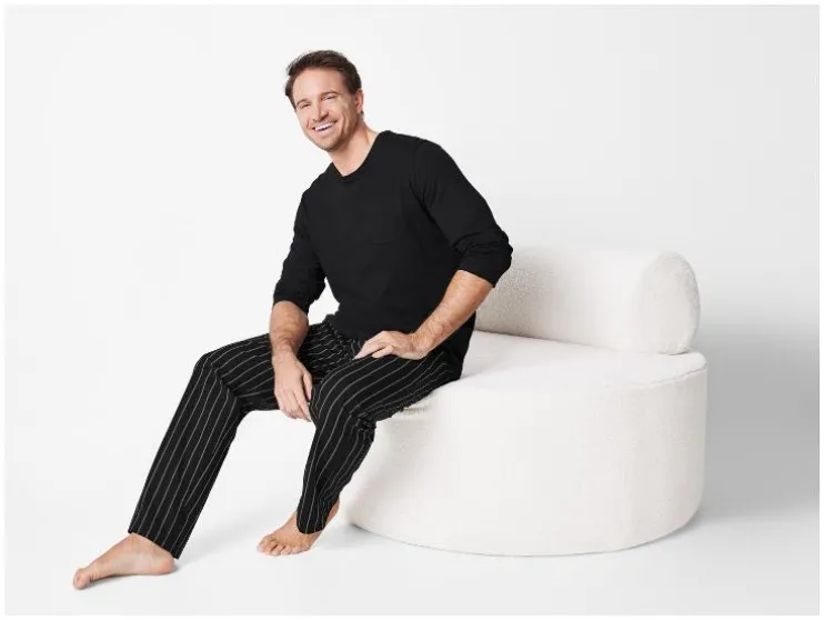 | Materiaal: | grijs/donkerblauw: bovendeel: 90 % katoen, 10 % viscose (viscose van Lenzing), broek: 100 % katoen, zwart: 100 % katoen |