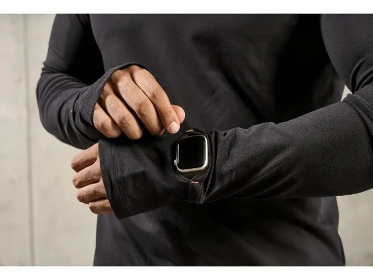- Mouwuiteinde met duimgat en praktische smartwatchopening