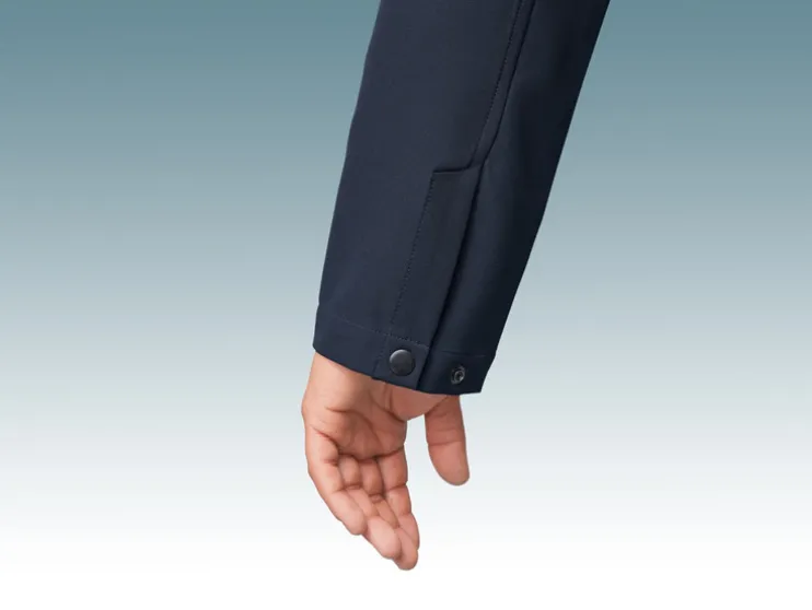 | Detail: | In breedte verstelbare mouwafsluiting met drukknoop |